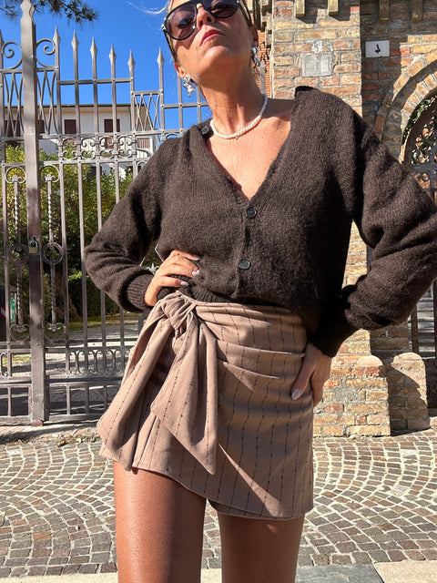Mini con lampo dietro , particolare drappeggio davanti annodato , simpatica perche dietro fatta a pantaloncino
