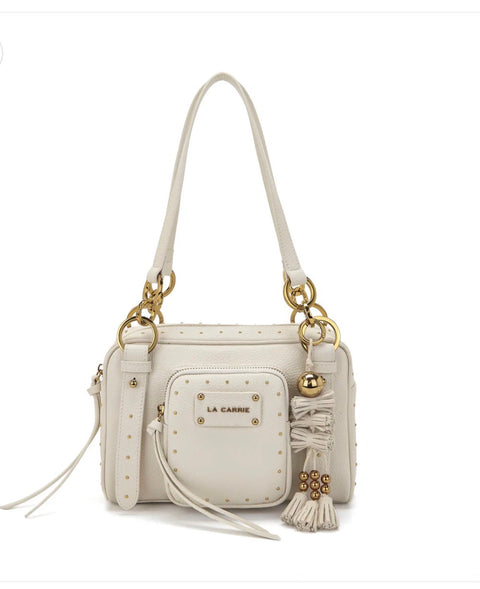Borsa in pelle martellata, micro borchie oro nei profili , due manici